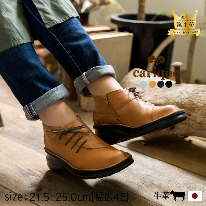 夏セール 10 Off ショートブーツ 靴 レディース 本革 黒 40代 ワイズ4e 幅広 甲高 50代 コンフォートブーツ 疲れない 厚底 軽量サイドジップ 21 5 22 0 25cm 旅行 歩きやすい 痛くない 外反母趾 おしゃれ 日本製 Carique 7032 レディース靴 Carique カリックゆったり